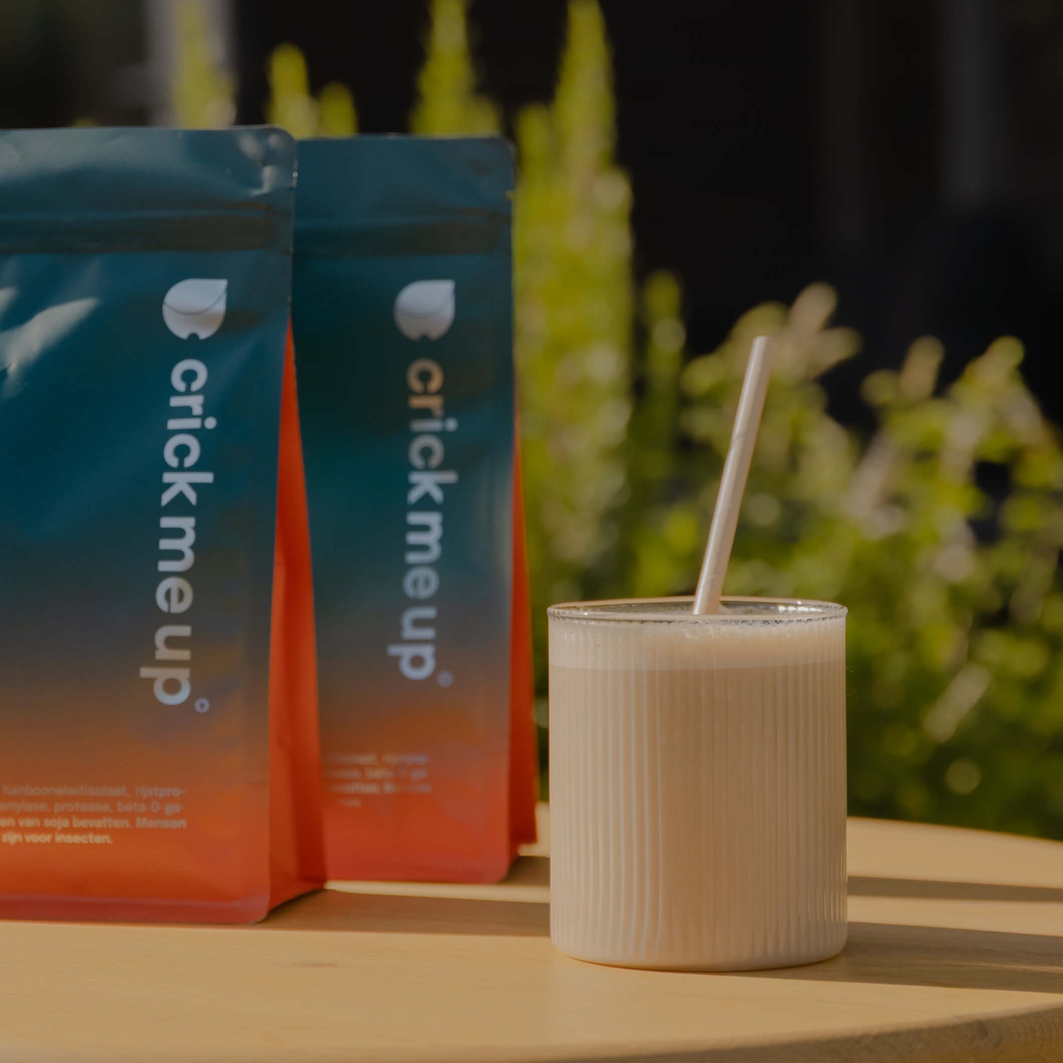 Schep 2 eetlepels CrickMeUp in je beker, schud, drink en voel je Cricked up!